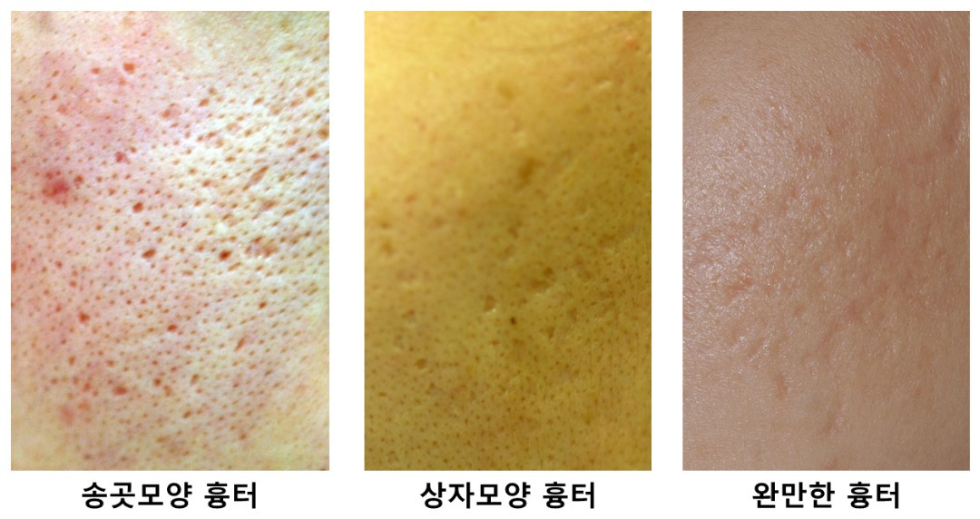 여드름 흉터는 여드름이 치유된 후 피부에 남은 자국이나 흔적을 말합니다. 여드름은 피지선이 과도하게 활동하면서 모공이 막히고 염증을 일으키는 피부 질환입니다. 이 염증이 깊고 심각할수록 흉터가 남을 가능성이 높습니다. 여드름 흉터는 대개 다음과 같은 종류로 나눌 수 있습니다.